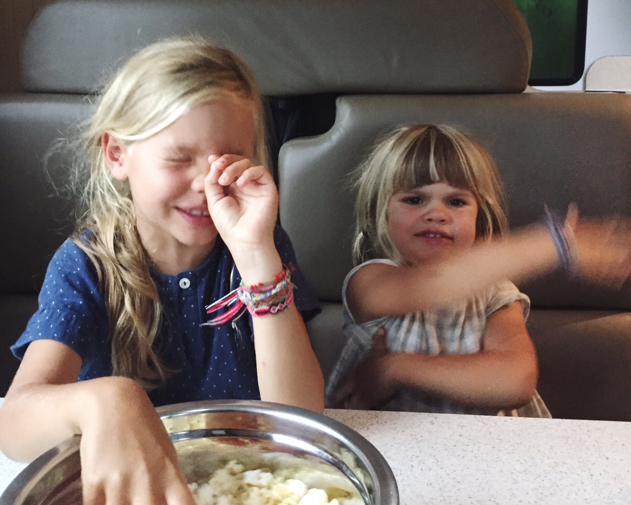 Day 1: After our incredible day in Milford Sound, we all woke up ready for more adventuring. I awoke first and took advantage of the very ‘practical’, if not charming, campsite we were in to shower, do laundry and organise the van. After breakfast and a bit of school, we drove all the way up to Queenstown. Friends had recommended we stay in Glenorchy, so we carried on north and found Mrs. Woolly’s campsite and General Store near the lake, surrounded by impressive mountains. Keen to get out and walk, we put on our raincoats and took a stroll along the lake before dinner. Michael sat with the kids and helped them with a journal entry while I cooked. The rain came down in sheets as we ate, but finished quickly and left a gorgeous rainbow arching its way over our van. We all took this as a hopeful sign of sunshine to come… but the rain was back within the hour. Sigh.