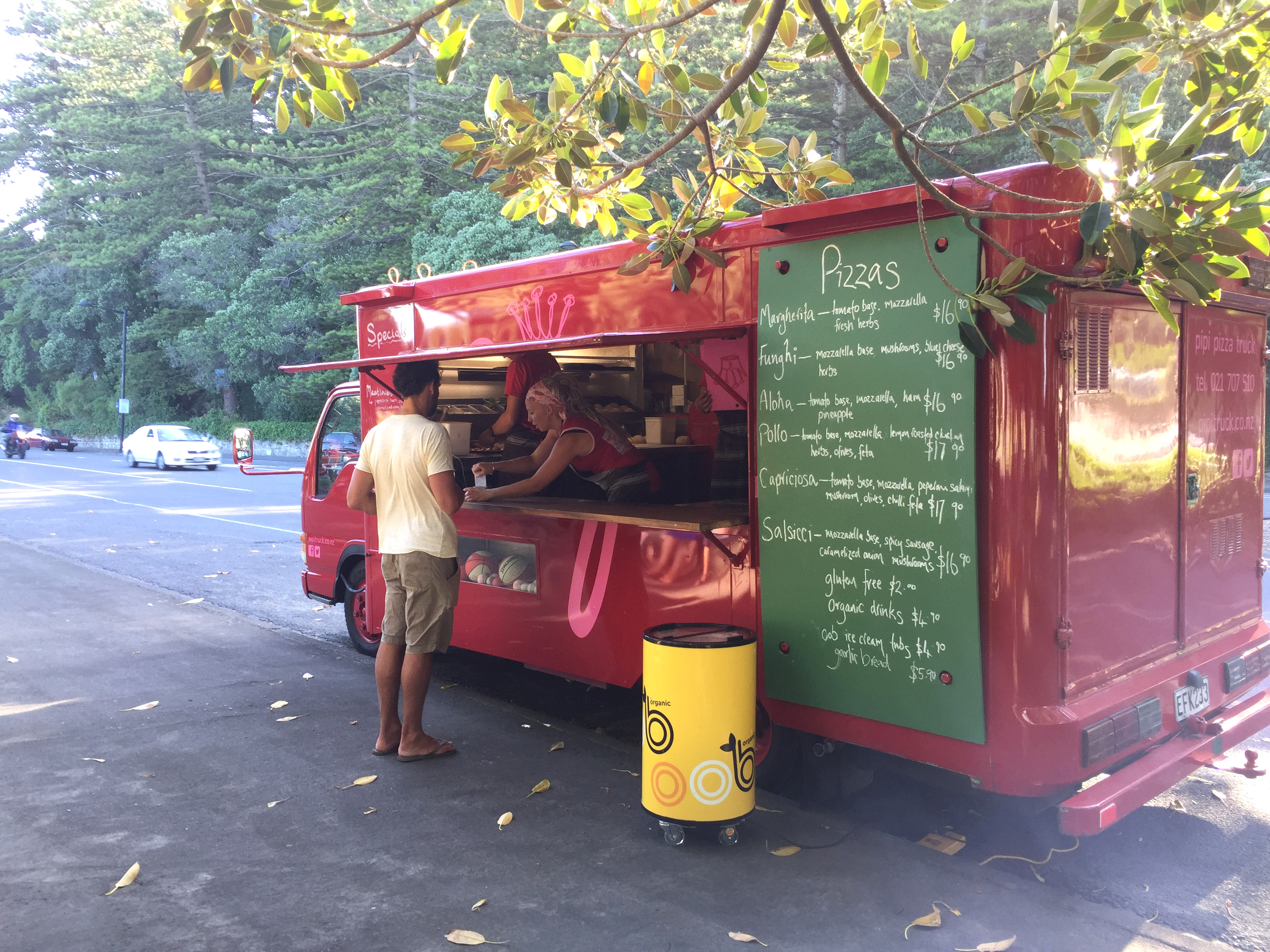 Day 4: After dropping her girls off for the first day of the new school year, Rebecca popped into our camper van (still in her driveway) to join us for our morning coffee. Later, after we spent a couple hours doing homeschooling, she took our whole gang into Napier for a guided tour of her charming city. We grabbed donuts from Mister D, took a short stroll through the pretty Art Deco centre, and then took in a panoramic view of Hawke’s Bay from a hilly overlook in Napier.