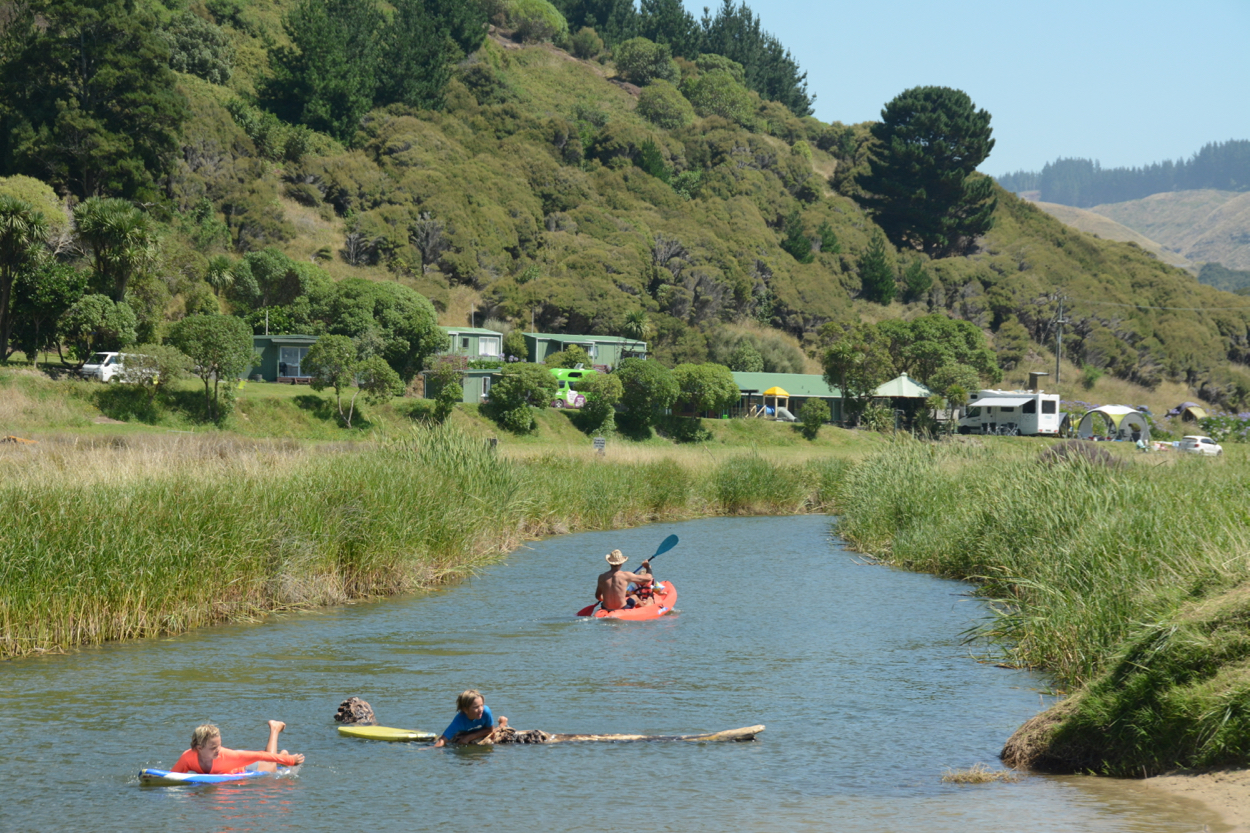Rebecca suggested we check out nearby Waipatiki Beach, so that afternoon we drove forty-five minutes north for what we thought would,d be a few hours on the beach. When we arrived, we discovered a charming campsite nestled alongside a gentle river leading to a golden beach. The sun was shining and the campsite was quiet, so we decided to stay for the night. One night became four as we could not leave this special spot.