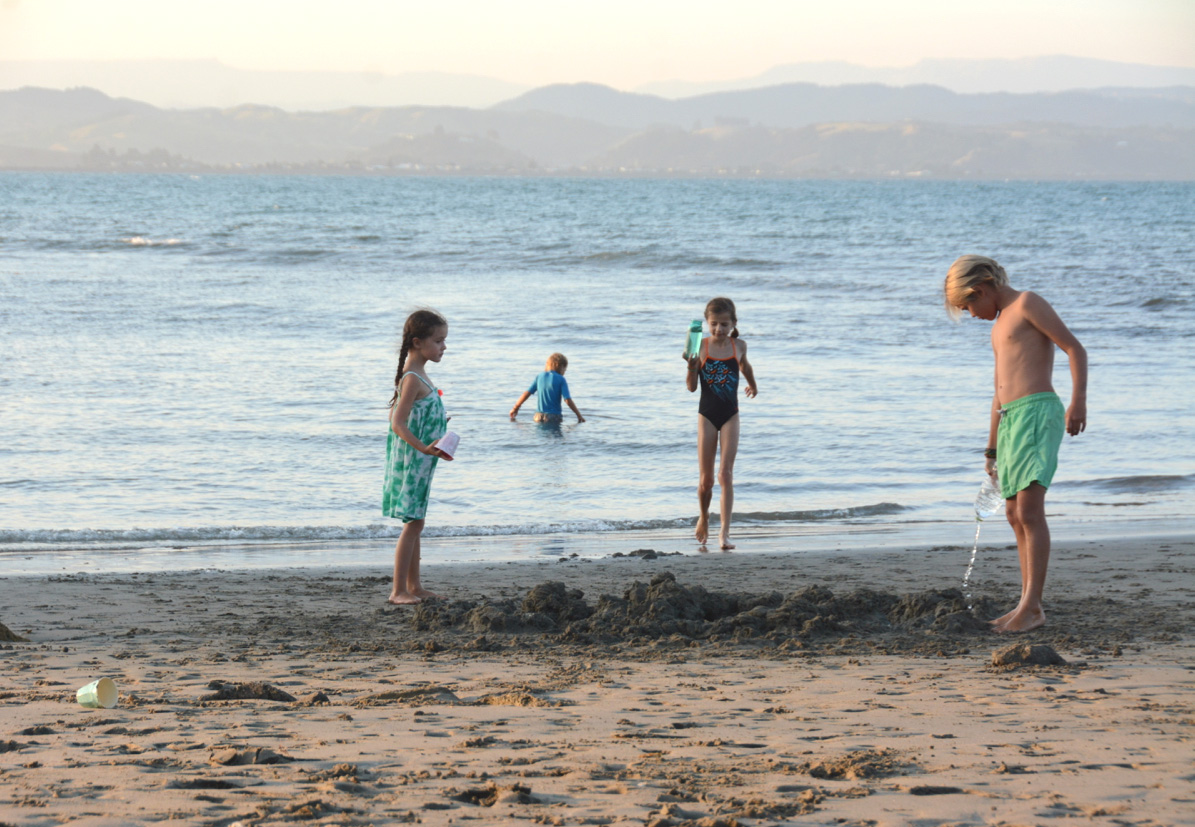 Day 6: Again, we awoke to sunshine and ate breakfast outside. We enjoyed another day at the beach, with Michael and Easton surfing for a few hours (on new boards!) while the other kids played in the river. That evening, we drove back down to Napier to meet up with Rebecca and the girls. We grabbed pizza from Pipi’s pizza truck and took it to a nearby beach for a picnic and play that lasted well past everyone’s bedtime. We said goodbye to our new friends with heavy hearts. Ivy was especially sad – I watched little tears roll down her cheeks as we drove back to our campsite. It’s not easy to make such wonderful friends only to say goodbye a few days later.