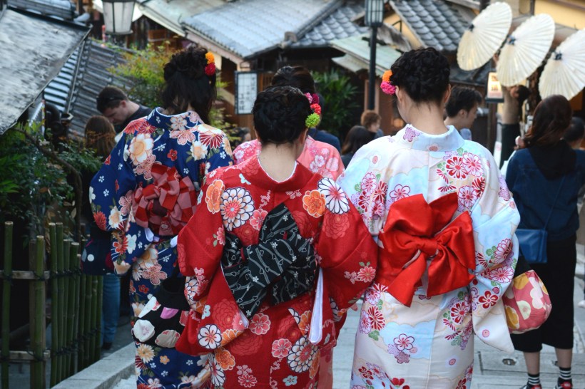 - Shinkyogoku shopping market/arcade – on our first rainy day we spent too much time in the B-Label sticker shop, plus found numerous traditional Japanese fabrics, slipper and kimono shops. We gave in to the girls’ request for their own yukatas!