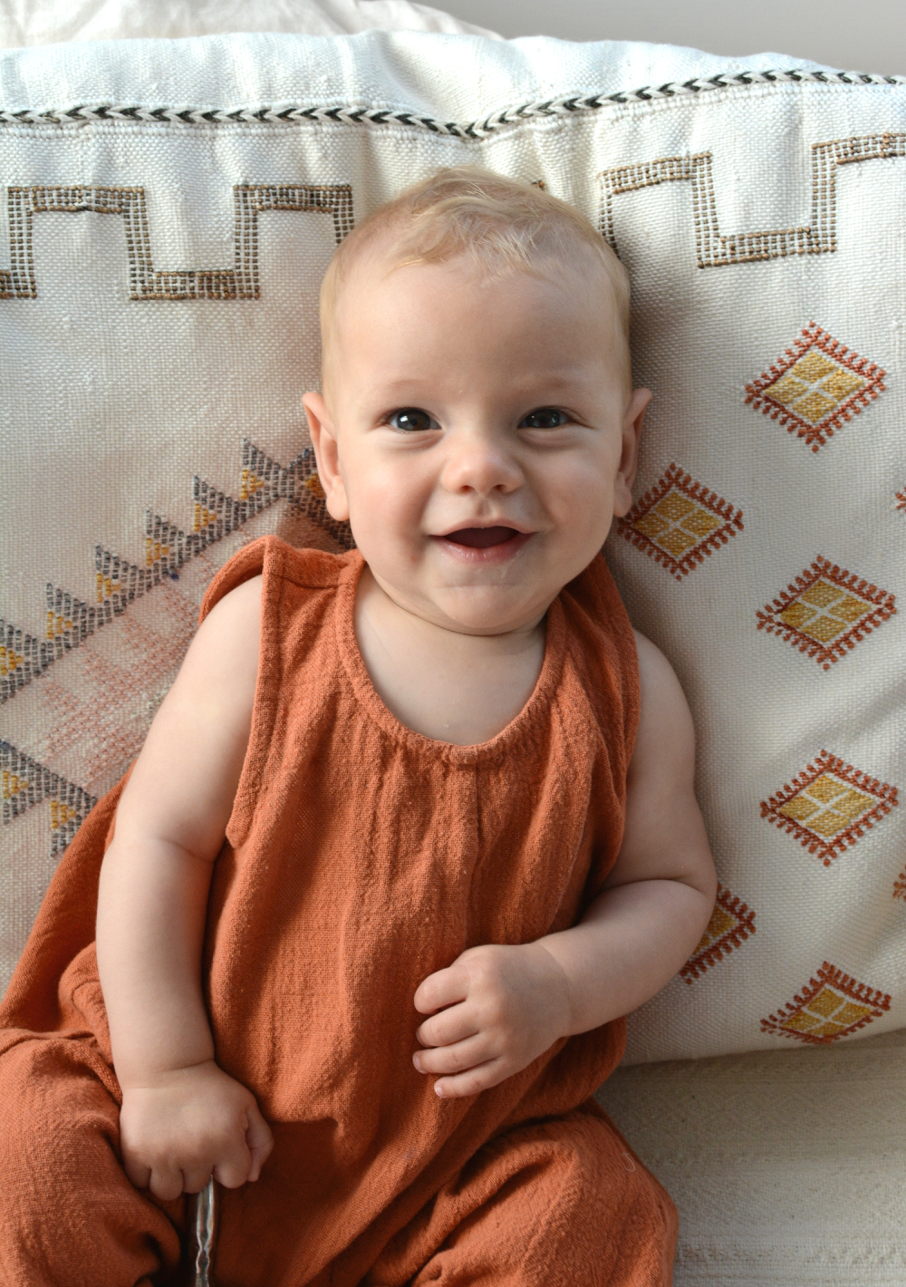 - He’s a happy, smiley baby… unless you put him in his car seat (though he’s getting better of late).