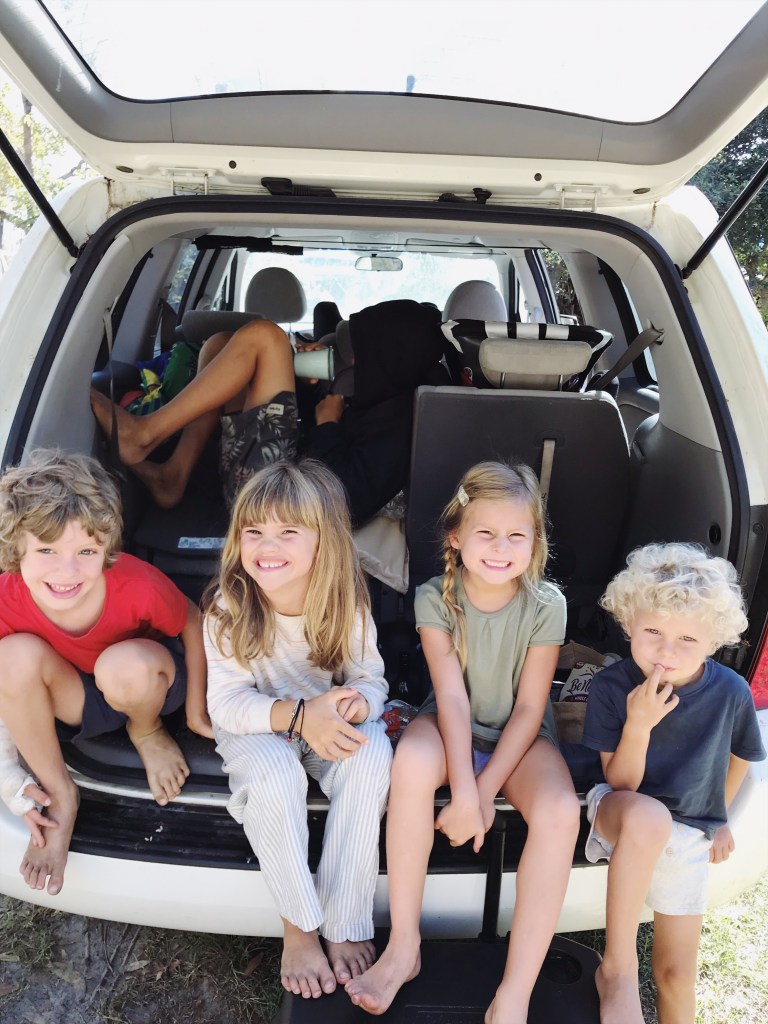 This summer, we went south both times. The first trip was a 2-hour drive down the coast to Minnie Waters. We camped in the Illaroo campground in the Yuraygir National Park, right on the ocean! It was our first rugged camping experience — no camp kitchen, no showers, not even any running water! We slept in our tent, bathed in the ocean, cooked on our camp stove, and refilled our big jugs of drinking water every time we left the national park on daily surf adventures. We camped with three other families and managed to get four campsites all in a row, with plenty of shade and an ocean breeze. The kids ran around from one site to the next, and we’d often find them in one of the tents playing card games or drawing together. Kid heaven!