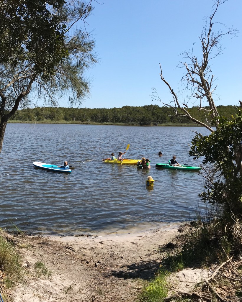 As we arrived, a group of campers were packing up after a week of camping. We chatted to them briefly and discovered they live near us in Mullumbimby. They very generously offered to let the kids use their kayaks for the weekend, which ended up being the best thing about the weekend! The kids spent every waking minute in the lake, playing on those kayaks and paddling around.