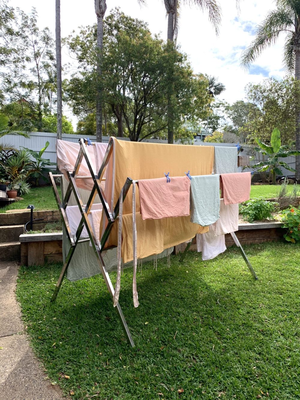 - We try to avoid using the tumble dryer if we can. (This is tricky in the wet season here, as sometimes we can have a month of non-stop pouring rain, but outside of those seasons, we mostly dry everything on the line.) We bought a large stainless steel foldable clothes airer, which we stick in a sunny spot of our garden (and can hide away whenever we have guests over!).
